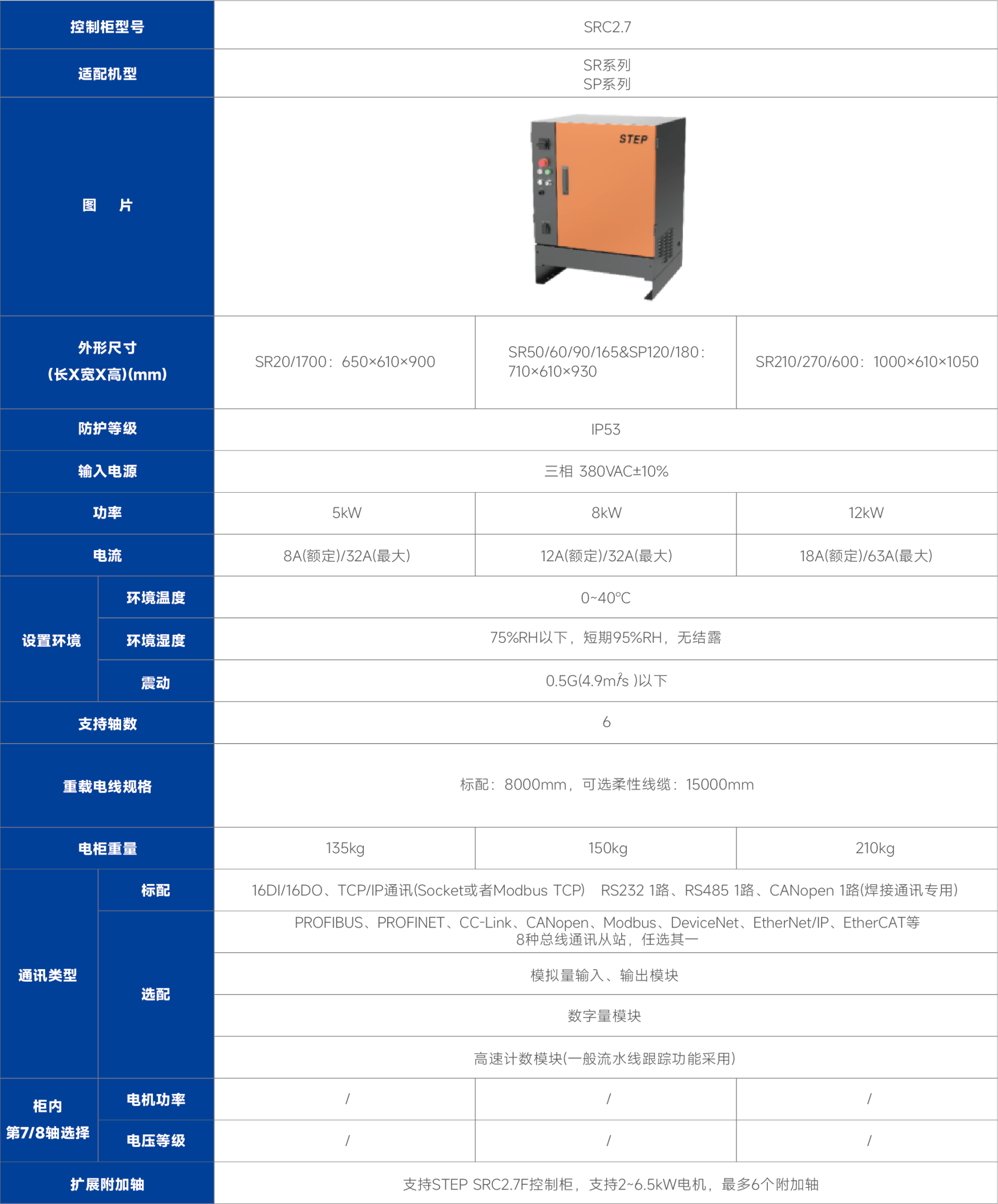 SRC2.7机器人控制柜- ● SRC2.7系列控制系统有多种规格可供选择,能够同时满足不同负载机器人及不同应用环境的要求