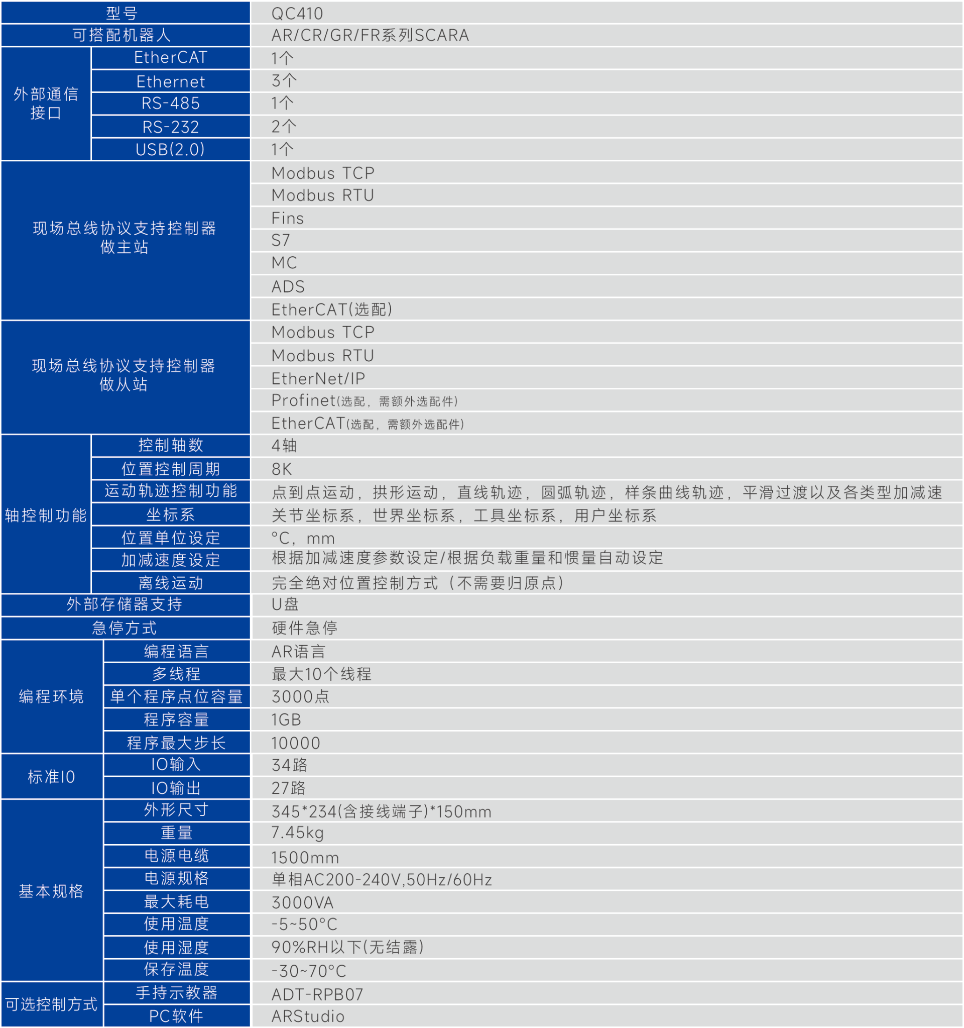 QC410BSCARA机器人控制系统- ● 搭配最新上位机软件ARStudio:同时支持示教器控制,免示教器PC控制