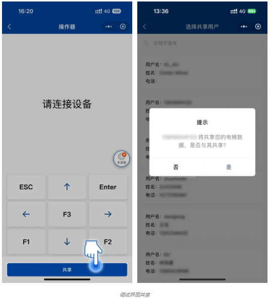 告别传统操作器!手机秒变专业调试终端,新时达系统用户现可随时随地完成电梯调试。更支持「调试界面实时共享」功能——遇技术难题时,一键分享操作界面至协作伙伴,多人远程协同诊断,“团战”效率提升!