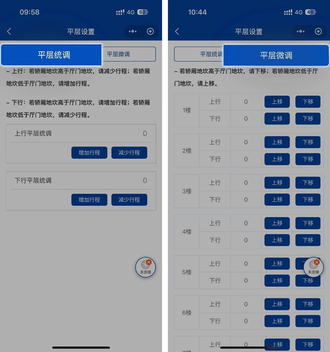 智能调试还把平层调整分为了平层统调和平层微调。平层统调就是所有楼层一起调整,您想单独调整某一层,就可以使用平层微调。平层设置的操作过程非常清晰明了,还有步骤说明指导您一步步的操作,就算是新手也能轻松上手!