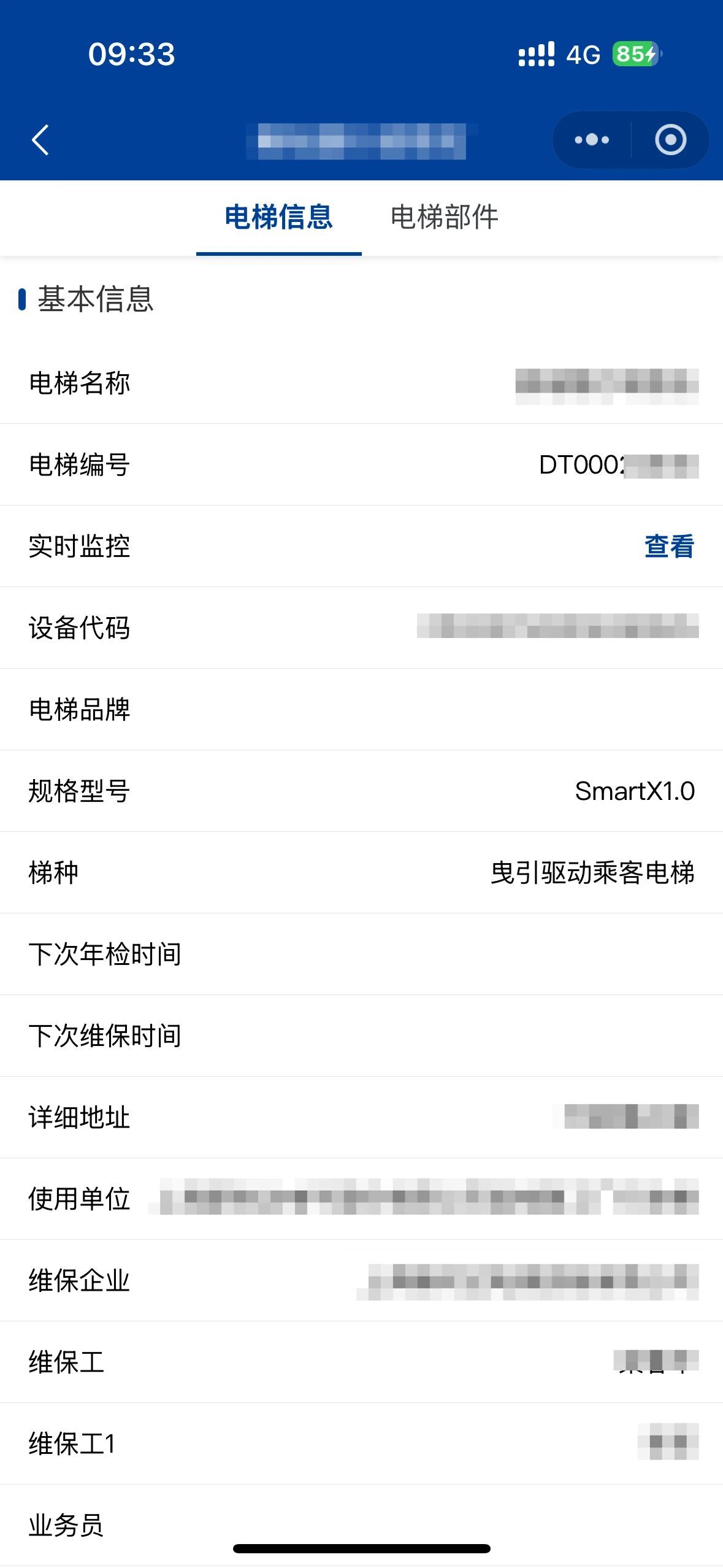 电梯档案模块详细记录了每台电梯的基本信息、扩展参数、部件绑定等内容;实时监控功能可以查看电梯实时运行状态、服务模式以及实时故障。