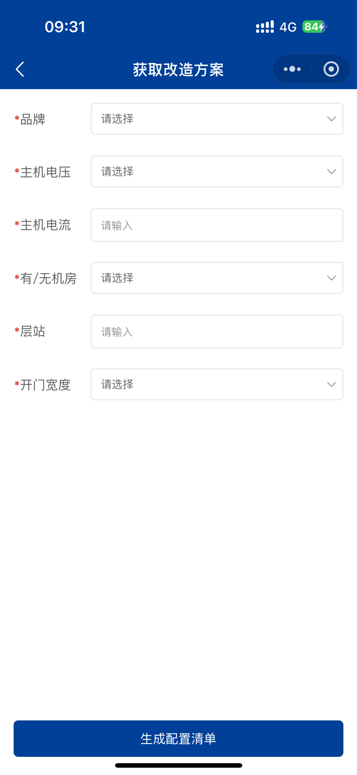 前者只需输入品牌、主机电压、层站等 6 个参数,即可自动生成标准改造方案,点击 “获取进一步信息” 便可快速对接专业人员。