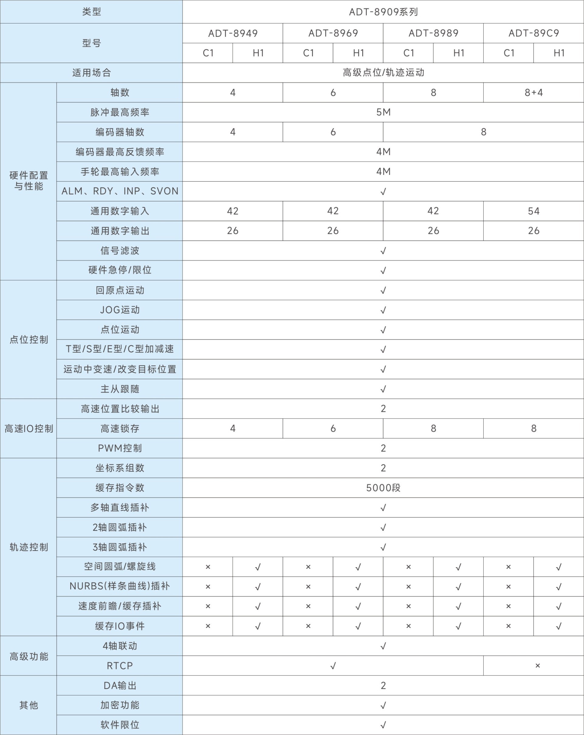 ADT-89C9 C1/H1是高性能脉冲运动控制卡,支持12轴(8路伺服和4路步进);输入54路,输出26路,1路RS485接口,点位卡/轨迹卡